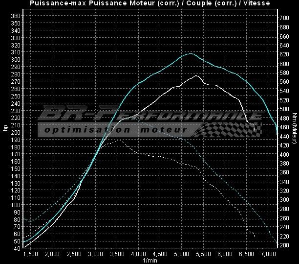 Bien que sur l'Astra J OPC 280, l'augmentation de puissance soit très limité par le petit turbo (314cv en stage 1+), il ne faut pas regarder comme beaucoup le font, la puissance max totale, mais la puissance supplémentaire obtenue sur les différentes plages de régimes, pour exemple : Le gain total max est de +34cv mais sur la plage de régime des 3500tr/min stock 199cv stage 1+ 260cv (61cv de gagné) 4500tr/min stock 240cv stage 1+ 290cv pic de puissance max stock 5255tr/min 271.7cv et à 5500tr/min la puissance chute à 260cv stage 1+ 5074tr/min 314cv et à 5500tr/min on a encore 304cv à 6500tr/min 295cv avec un si petit turbo, c'est un exploit preuve du très bon travail.. mais ce que j'apprécie sans doute le plus, s'est que l'on a affaire à des pro qui bossent en faisant attention à votre voiture, ça travail proprement et sérieusement !!